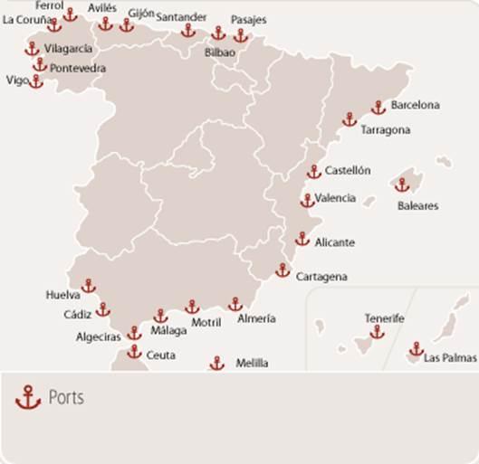 Španělsko porty mapě