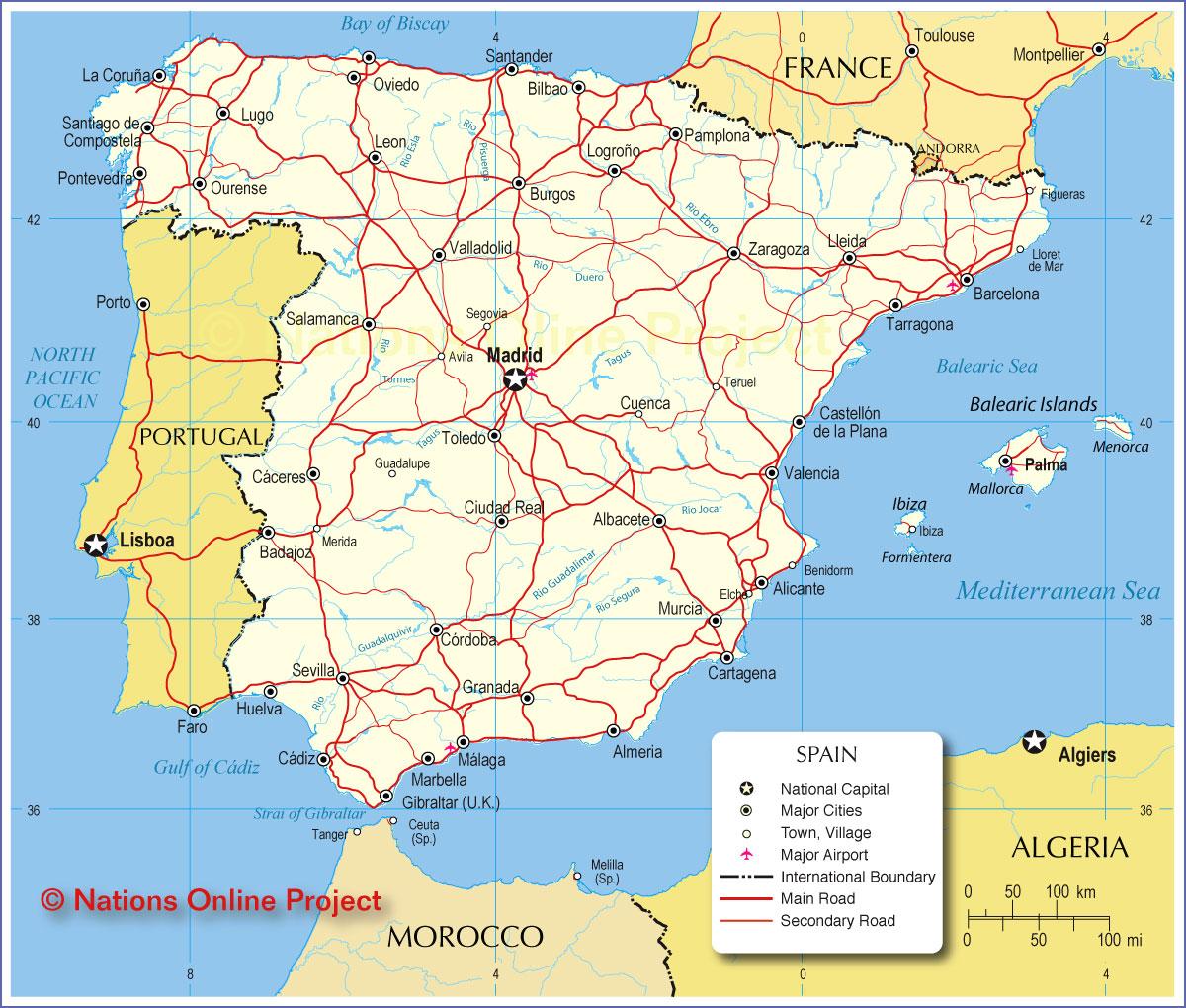 Španělsko transporty mapě